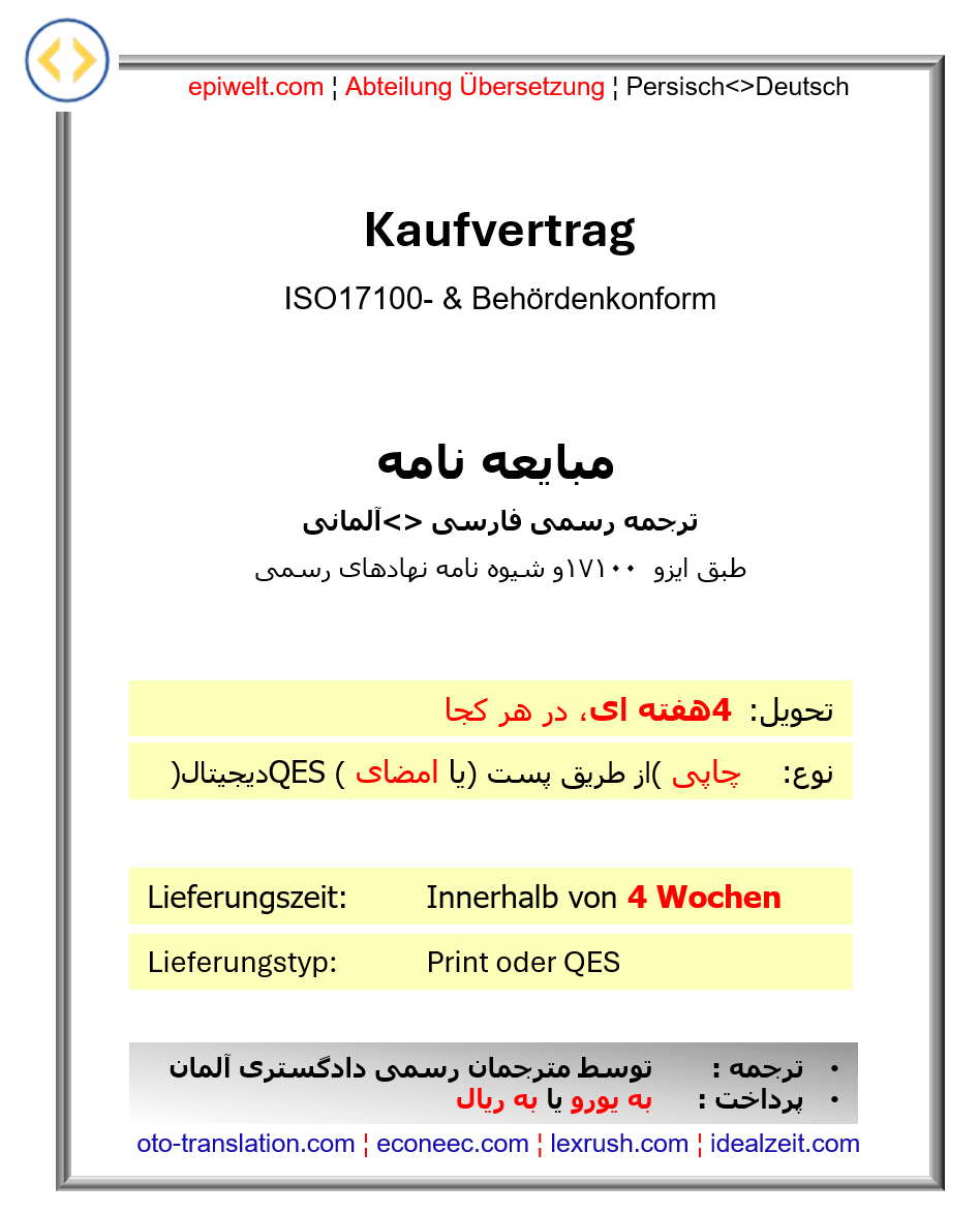 Urkunden | Kaufvertrag | مبایعه نامه